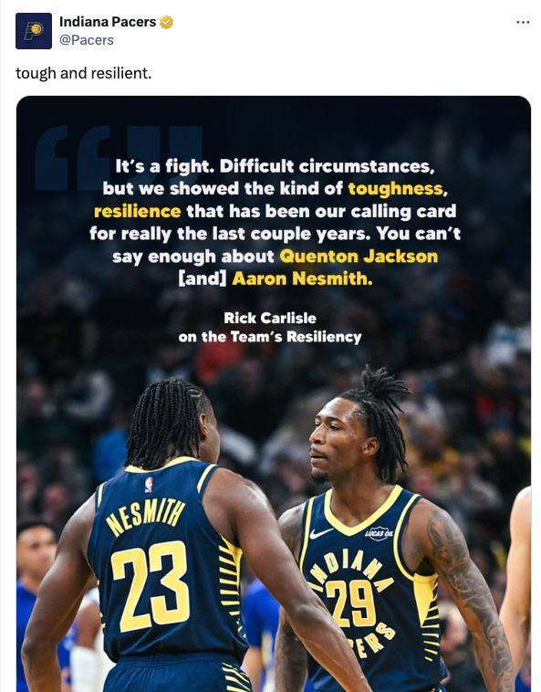 今天为了守住主场,步行者能用的人几乎全上,搭上3个双向合同球员硬是凑出了12人轮换,昆顿-杰克逊连续第二场首发,泰隆-彼得和雷杰-丹尼斯也都替补出战,刚刚用困难特例签来的厄尔直接登场救火也打了6分钟——这场比赛到最后5秒才分出胜负,压根就没有垃圾时间。