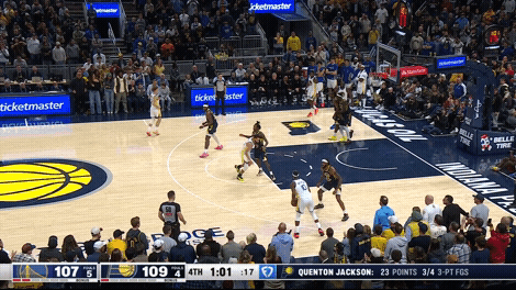 勇士这边核心俱在,但优势不大,上半场仅领先个位数,第三节一度被步行者反超大半节又重新夺回优势,第四节勇士前半节还领先11分,被步行者突然的爆发打了一波21-5,饮恨低头离开。