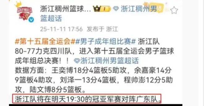 半决赛花絮!朱俊龙嘲讽昔日队友,浙江提前宣布决赛对手是广东