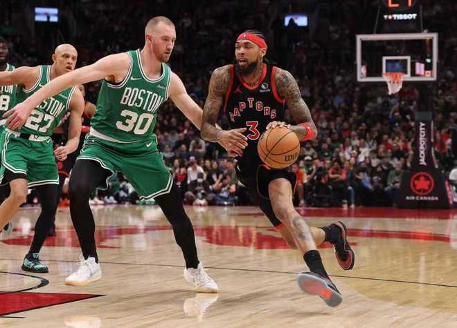 凯尔特人上一场主场129-116战胜热火,猛龙过去两场连续客场战胜热火与雄鹿收获2连胜,本赛季首次交锋凯尔特人客场121-113战胜猛龙。本场凯尔特人缺少塔图姆与布朗,猛龙缺少巴雷特与珀尔特尔。首节开局凯尔特人5-3领先,猛龙一波8-0攻势反超6分,普里查德引领7-2攻势追分。凯尔特人在16-20落后情况下,打出一波梦幻16-0攻势,首节结束凯尔特人32-20领先猛龙12分优势。凯尔特人首节26中12,其中三分9中4,普里查德8+3+4与怀特6中1仅得到3分;猛龙26中8,其中三分16中4。