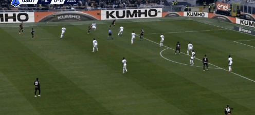 ↑33:15,边路萨勒马克尔斯和托莫里把萨索洛的防守吸引在边路,莫德里奇的前移接球就让本来负责盯防齐克的坎德处于顾此失彼的状态(索斯特维德没有及时横移)。利用魔笛的传球以及齐克这一点在肋部的接应,就打穿了萨索洛整条防线的布置,随后的事大家就都知道了。